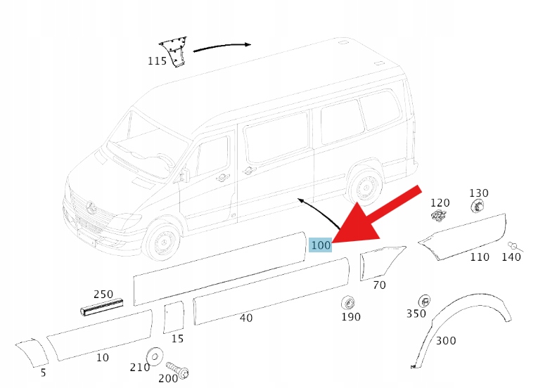 LISTWA DRZWI PRZESUWNYCH LEWYCH MERCEDES SPRINTER W906 A90669016009B51
