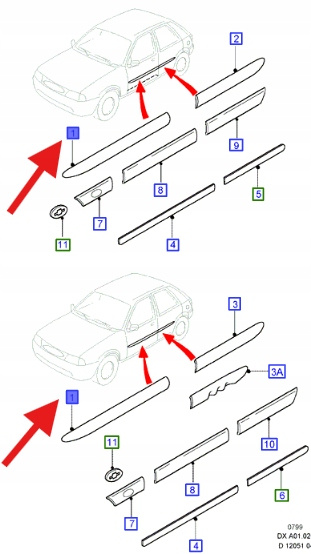 LISTWA DRZWI PRZÓD FIESTA 1995- 2002 OE 1013949 _ 96FB-A20938-ABZCAT