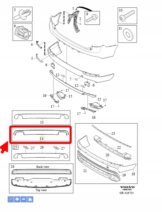 LISTWA DYFUZOR ZDERZAKA TYŁ R-Design VOLVO XC90 2016-2021 OEM/OE 32227193