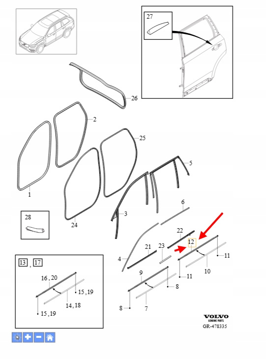 LISTWA OZDOBNA SZYBY DRZWI PRAWY TYŁ VOLVO XC90 2016- OEM/OE 32342092