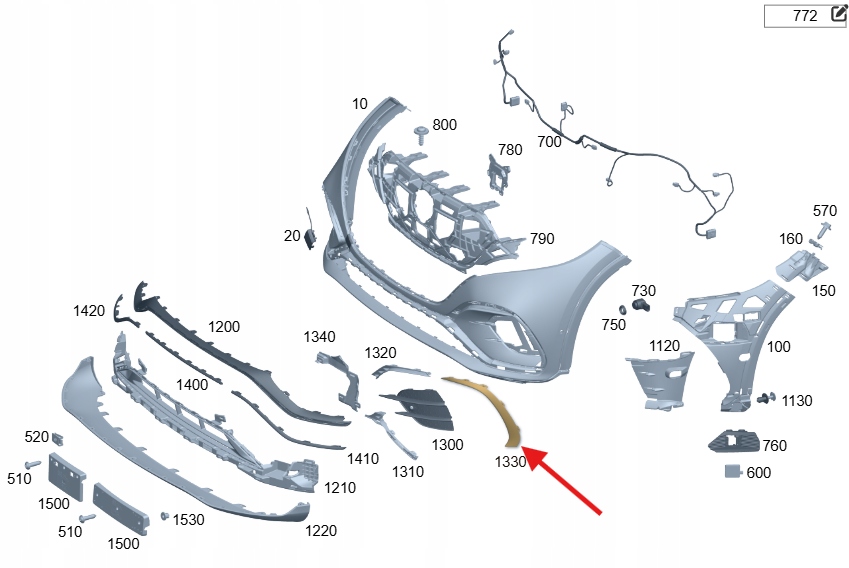 LISTWA OZDOBNA ZDERZAKA LEWY PRZÓD MERCEDES EQS W296 OE A2968856501