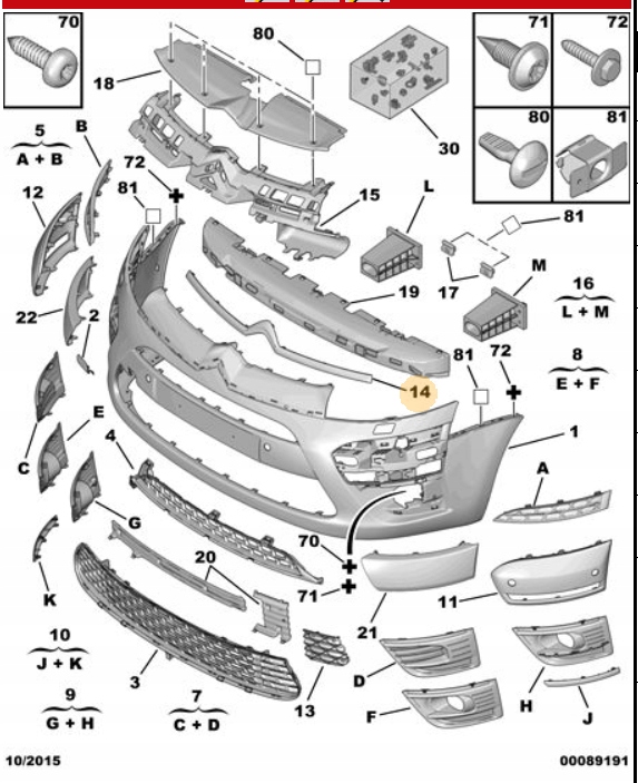 Listwa ozdobna zderzaka przód Citroen C4 Picasso OE 7453C5