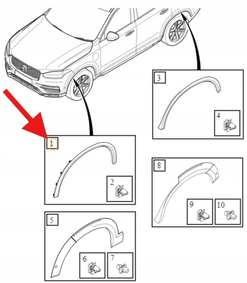LISTWA POSZERZENIE BŁOTNIKA PRAWY PRZÓD VOLVO XC90 2024- OE 40017409