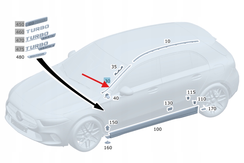 LISTWA SZYBY CZOŁOWEJ LEWA MERCEDES EQA W243 B klasa W247 OE A2476900301