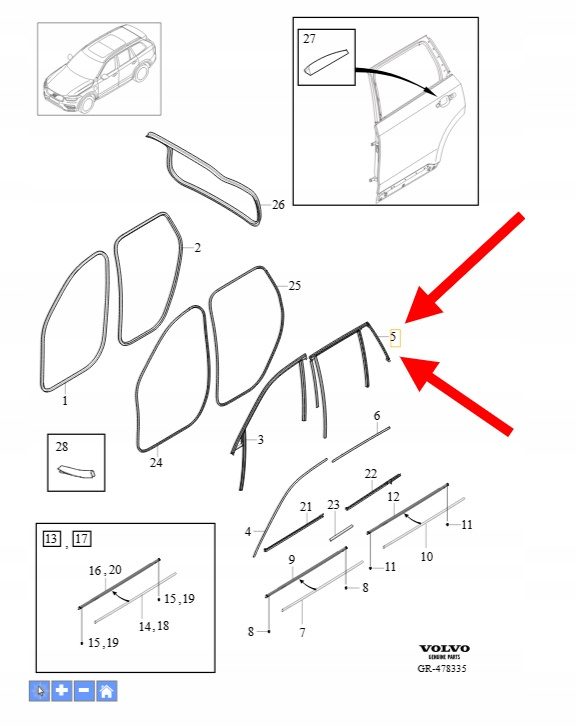 LISTWA USZCZELKA DRZWI PRAWY TYŁ VOLVO XC90 2016- OEM/OE 32205574