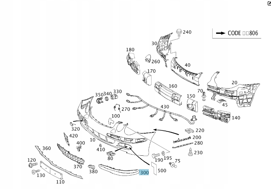LISTWA ZDERZAKA PRZÓD PRAWA E KLASA 211 02-05 PDC W211