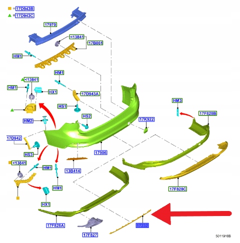 LISTWA ZDERZAKA TYŁ FORD FOCUS KOMBI 2018- OE 2344783 _ JX7B-17F010-XASMA4