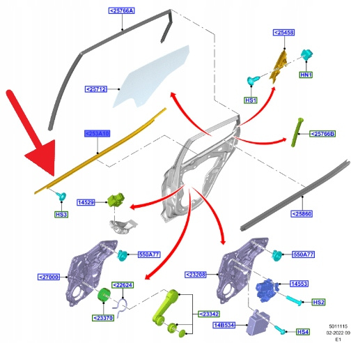 LISTWA ZGARNIAJĄCA SZYBY DRZWI LEWY TYŁ FIESTA 17- 2338064 _ H1BB-A25605-AG