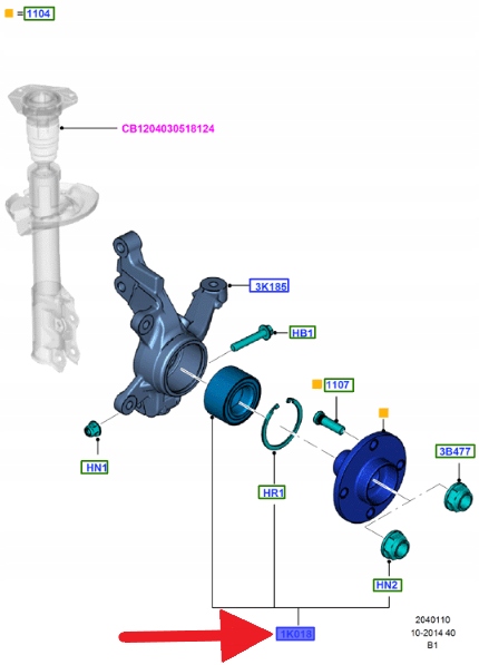 ŁOŻYSKO KOŁA PRZÓD L P FORD FIESTA 2008- OE 1582282 _ 8V5J-1K018-AA