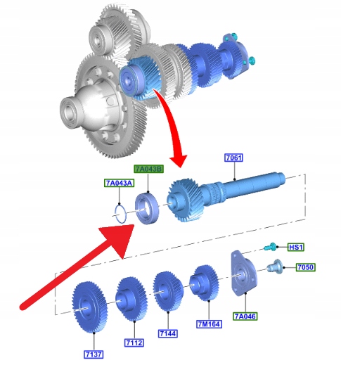 ŁOŻYSKO WAŁU SKRZYNI MANUAL B6 FORD FOCUS FIESTA 1756266 _ AV6R-7A043-LB