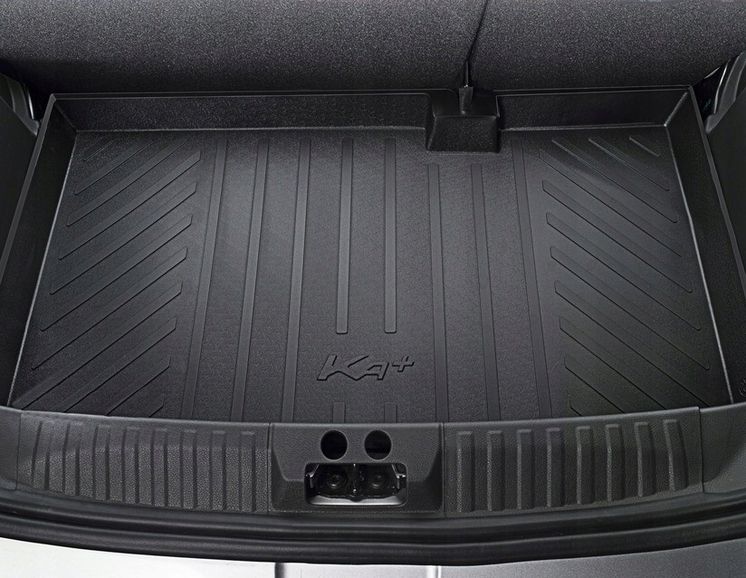 Do zaoferowania posiadamy dla Państwa dedykowaną, oryginalną, gumową matę antypoślizgową bagażnika Ford KA+. Mata posiada korytkową strukturę oraz na środku wytłoczone logo KA+. Wysokość rantu to 50mm.