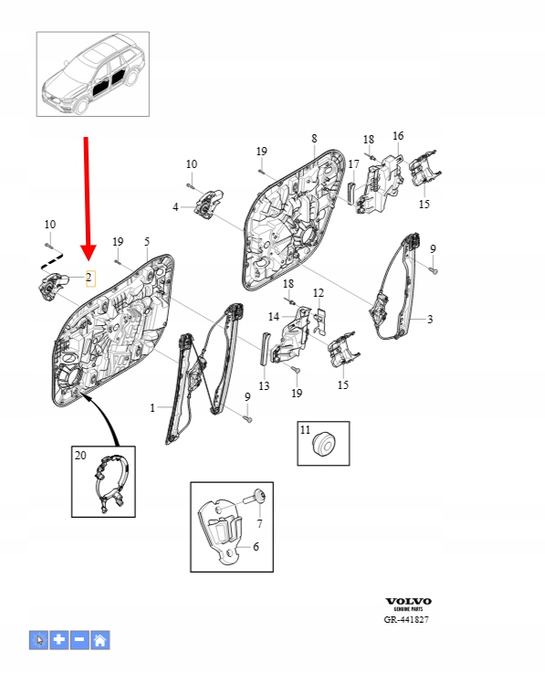 MECHANIZM PODNOSZENIA SZYB PRAWY PRZÓD VOLVO XC90 2016- OEM/OE 31440412