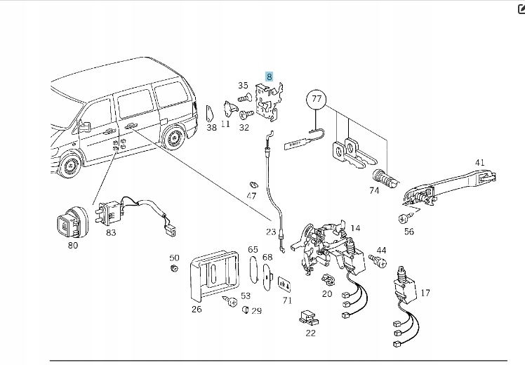 MERCEDES W638 ZAMEK DRZWI LEWYCH PRZESUWNYCH