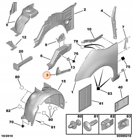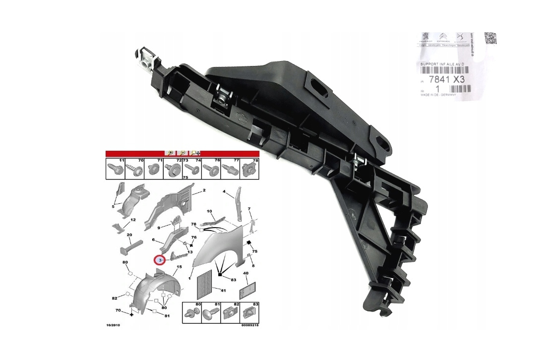 MOCOWANIE BŁOTNIKA ŚLIZG PRZÓD PRAWY CITROEN C4 PICASSO OE 7841X3