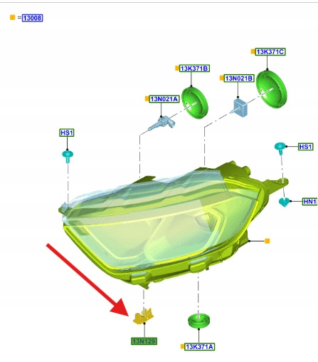 MOCOWANIE DOLNE REFLEKTORA FORD FIESTA ECOSPORT KA 1922351 _ 8A61-13A122-AC
