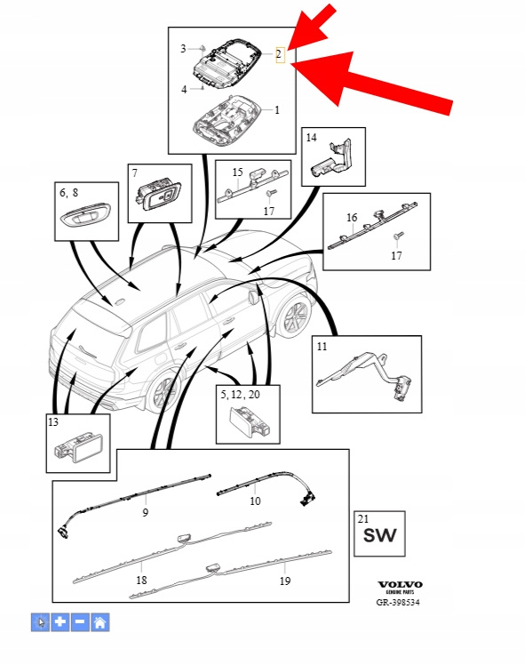 MOCOWANIE OŚWIETLENIA PODSUFITKI VOLVO XC90 2016- XC60 OEM/OE 31389459