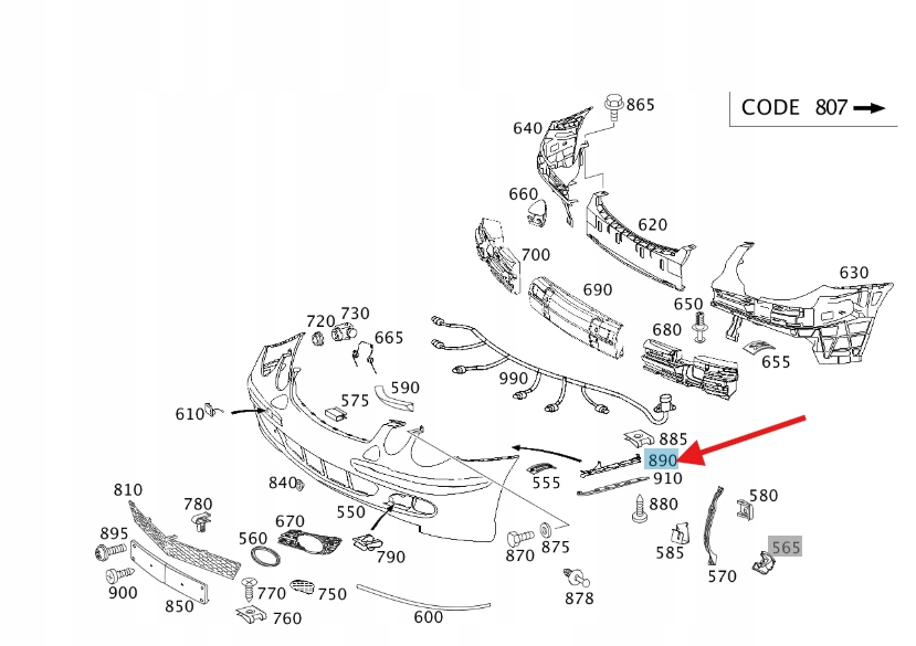 MOCOWANIE ŚLIZG ZDERZAKA LEWY PRZÓD MERCEDES E klasa W 211 OE A2118801114