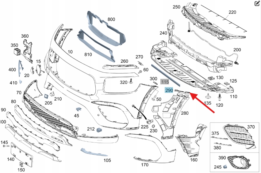 MOCOWANIE ŚLIZG ZDERZAKA LEWY PRZÓD MERCEDES GLB W247 OE A2478857300