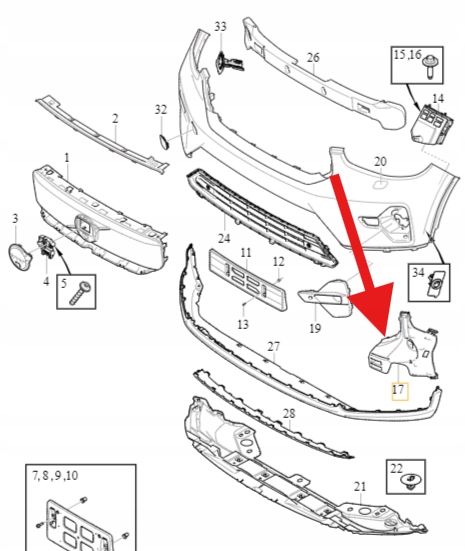 MOCOWANIE ŚLIZG ZDERZAKA LEWY PRZÓD VOLVO XC40 EX40 C40 2023- OE 32136092