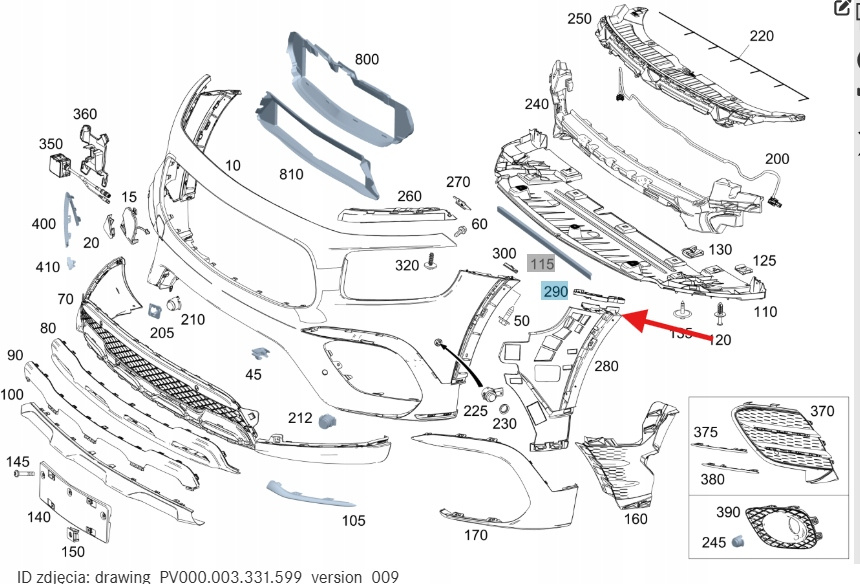 MOCOWANIE ŚLIZG ZDERZAKA PRAWY PRZÓD MERCEDES GLB W247 OE A2478857400