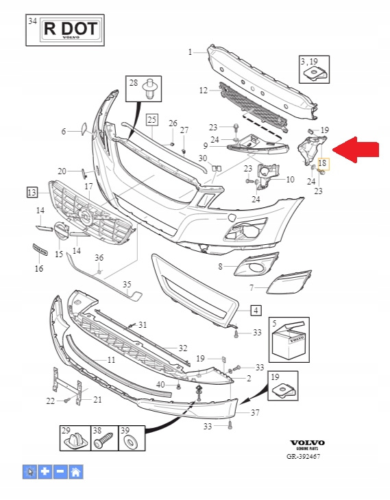 - MOCOWANIE ŚLIZG ZDERZAKA PRZÓD PRAWA VOLVO XC60 2009- R-Design OE 30763436