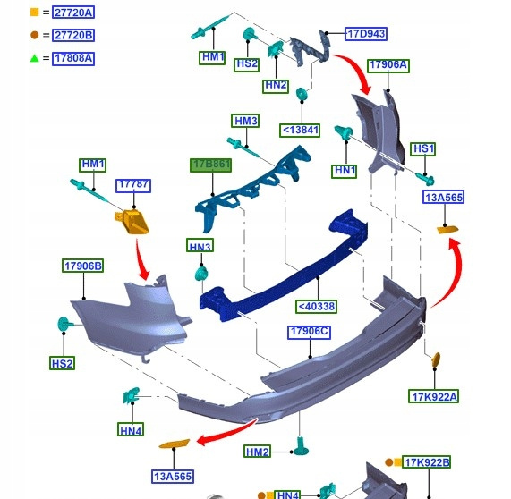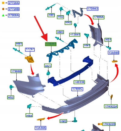 MOCOWANIE ŚRODKOWE ZDERZAKA TYŁ FORD OE FOCUS 1708051 _ BM51-N17B861-AB