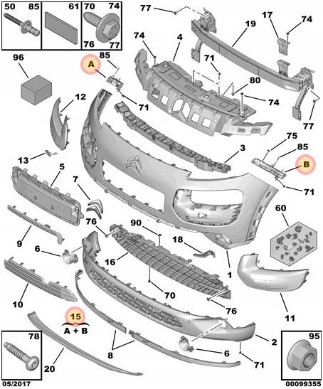 MOCOWANIE ZDERZAKA ŚLIZG PRZÓD PRAWY LEWY CITROEN C4 CACTUS OE 1611380580