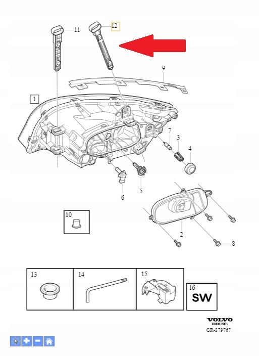 Mocowanie zewnętrzne lampy Volvo S60, V60 31294521