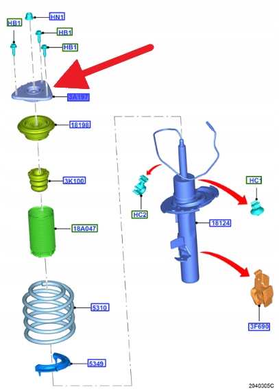 MOOWANIE AMORTYZATORA PRZÓD FORD FOCUS RS 2016- 2033575 _ G1FY-3K155-RB