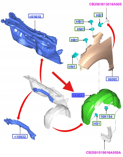 NADKOLE LEWY PRZÓD FORD B-MAX 2012- OE 1777901 _AV11-16115-BB
