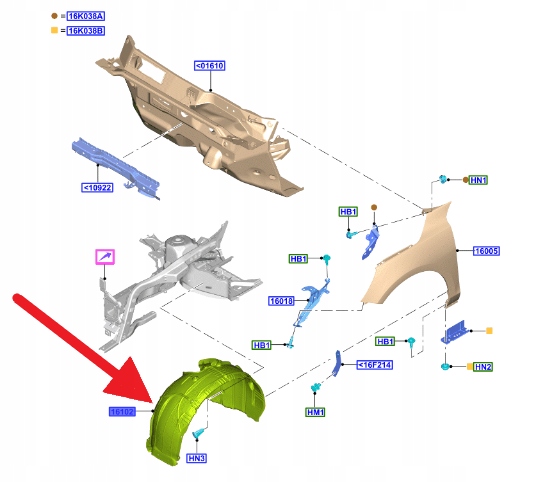 NADKOLE LEWY PRZÓD FORD FOCUS 2018- OE 2481504 _ JX7B-16115-CB