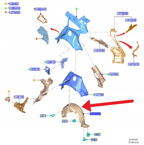 NADKOLE LEWY TYŁ FORD FOCUS KOMBI 2018- OE 2430832 _ JX7B-N278B51-AE
