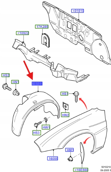 NADKOLE PRAWE PRZÓD FORD KA 2002- 2005 1337594 _ 3S51-16114-BG