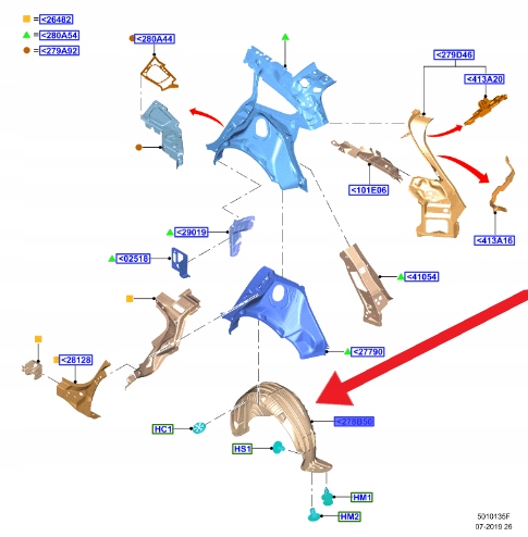 NADKOLE PRAWY TYŁ FORD FOCUS KOMBI 2018- OE 2430838 _ JX7B-N278B50-AD