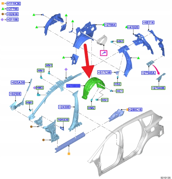 NADKOLE TYLNE PRAWE FORD S-MAX GALAXY 2015- OE 1879464 _ EM2B-R280K73-AC