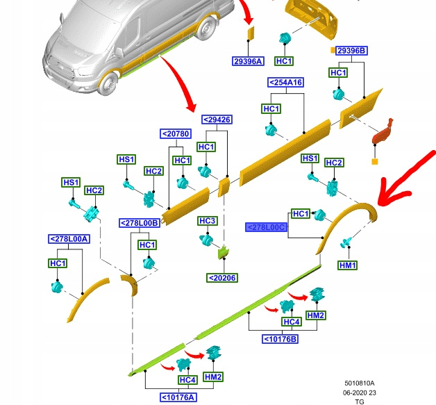 NAKŁADKA LISTWA BŁOTNIKA TYŁ PRAWA FORD TRANSIT 2019- OE