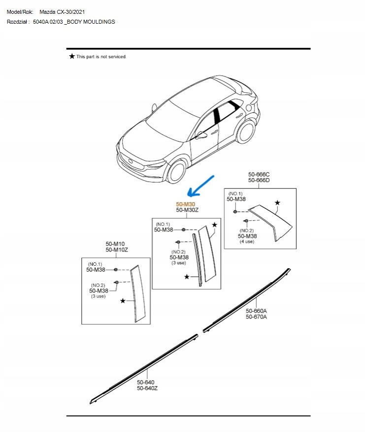 Nakładka prawa ozdobna drzwi tylne -Mazda CX-30 DM_DGH950M30