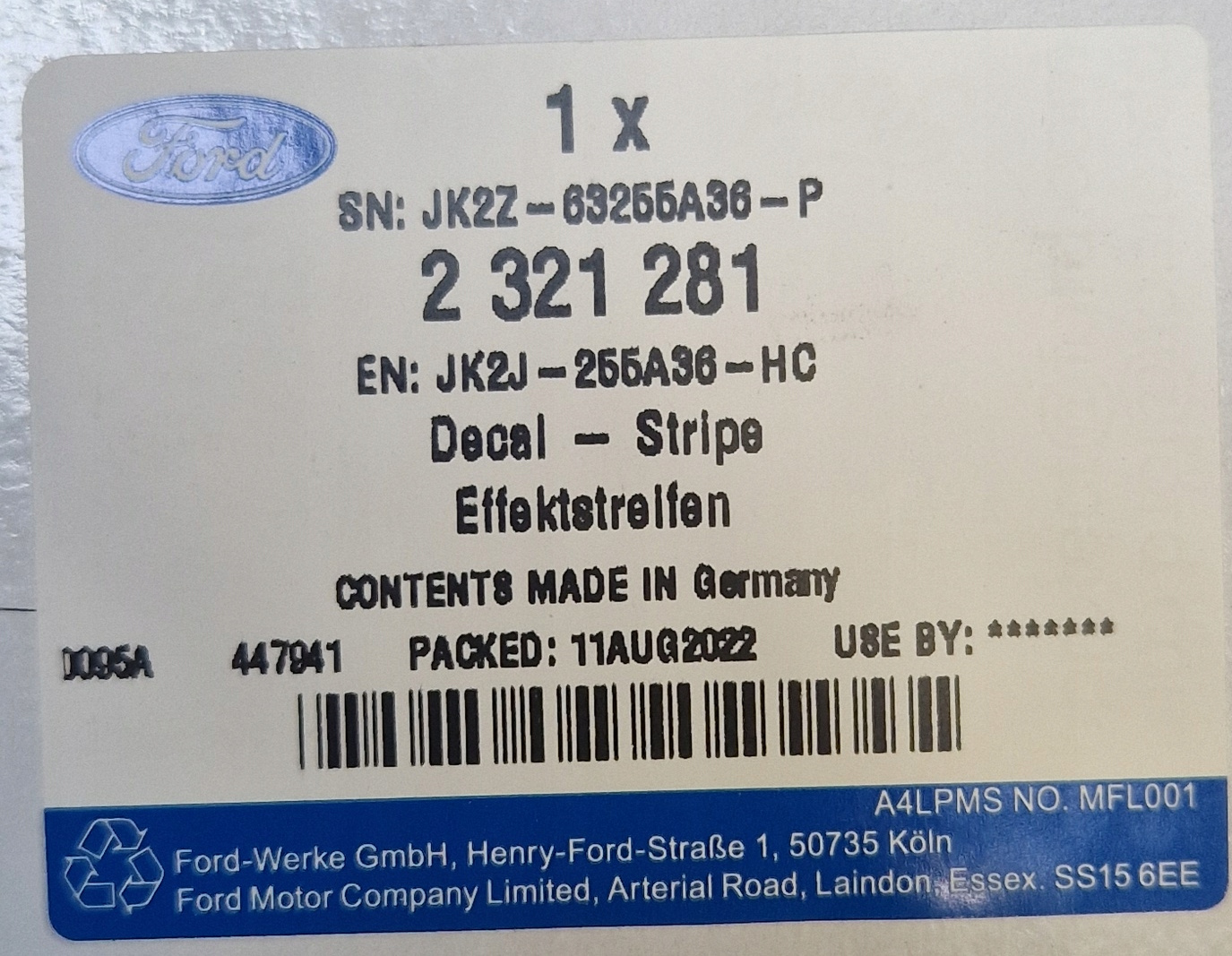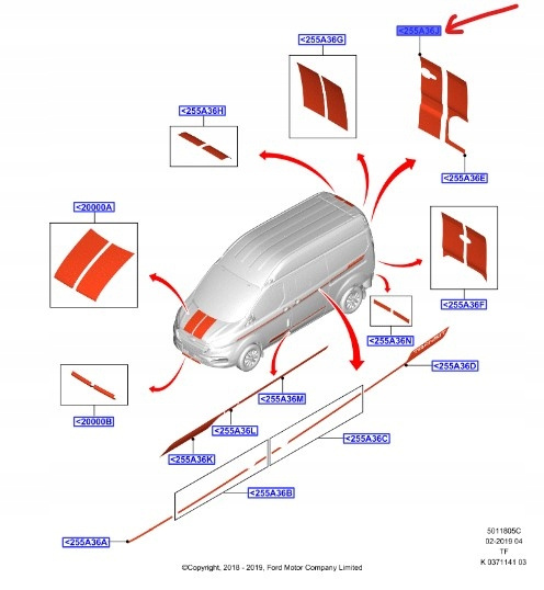 - NAKLEJKA DRZWI BAGAŻNIKA FORD TOURNEO CUSTOM OE 2321281 _ JK2J-255A36-HC