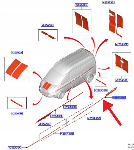 NAKLEJKA NA BOK BŁOTNIK LEWY TYŁ FORD CUSTOM 2018- 2332796 _ JK2J-291C53-GC