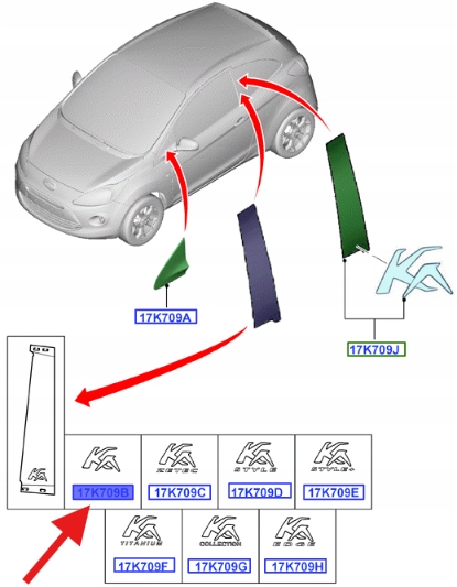 NAKLEJKA NA SŁUPEK Z NAPISEM FORD KA 2008- OE 1668571 _ 9S51-19N230-EB