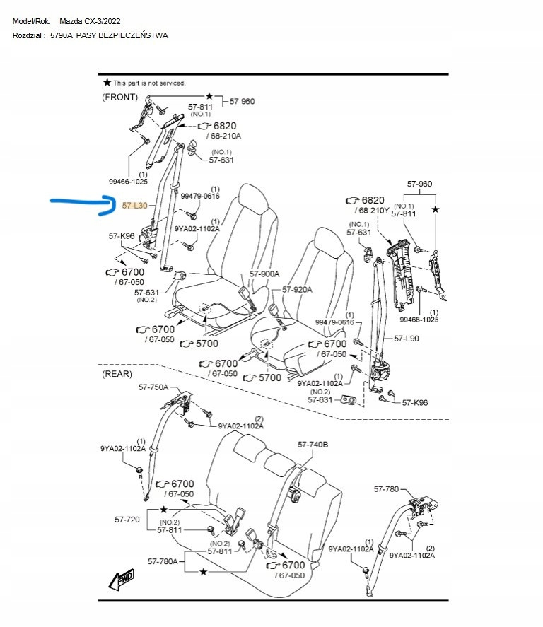 Napinacz wstępny prawy - Mazda 2 DJ Mazda CX-3 DK_DB2P57L30C