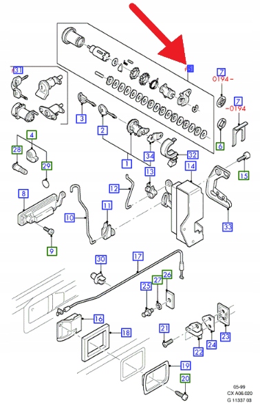 Zestaw - naprawa bębna zamka, lewa strona (z autoalarmem i blokadą drzwi)