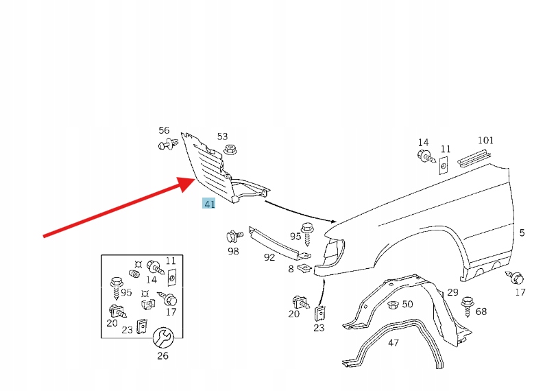 NAROŻNIK NADKOLA PRAWY PRZÓD MERCEDES 200 W124 OE A1248840435