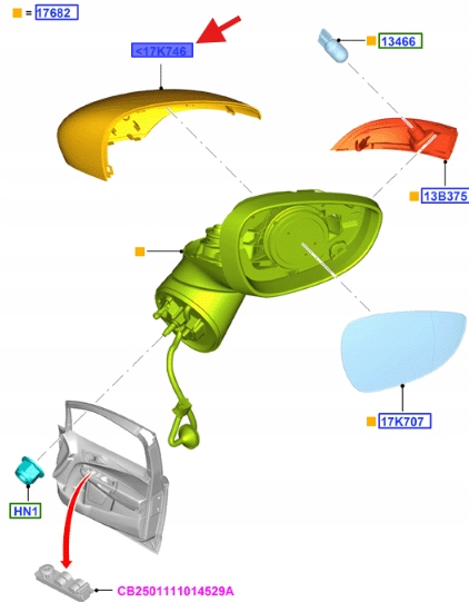 OBUDOWA LUSTERKA LEWA FORD B-MAX 2012- 1769629 _ 8A61-17K747-BE5CTS