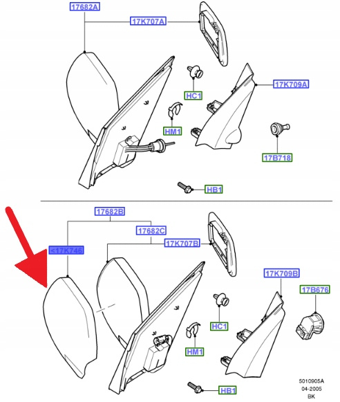 OBUDOWA LUSTERKA PRAWA FOCUS FIESTA FUSION 04- 1481405 _ 3M51-17K746-AANDAH