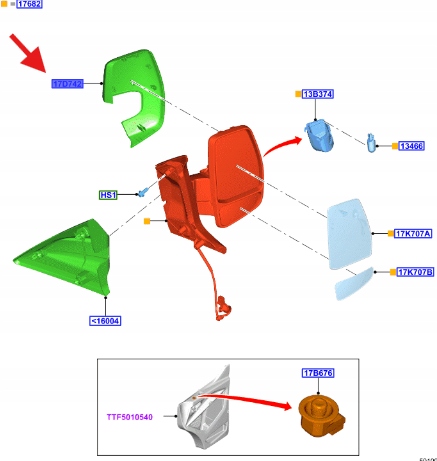 OBUDOWA LUSTERKA PRAWA FORD CUSTOM MK1 2018- 2175009 _ JK21-17K747-AAPRAA