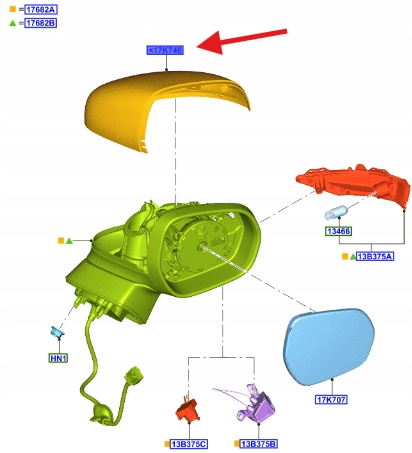 OBUDOWA LUSTERKA PRAWA FORD FIESTA 2017- PUMA 2505137 _ L1TB-17K746-AA57VT