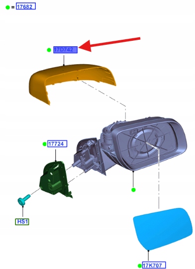 OBUDOWA LUSTERKA PRAWE RANGER 2011- 1717979 _ AB39-17K746-CA