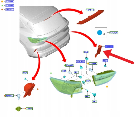 ODBLASK ZDERZAKA PRAWY TYŁ FORD KUGA 2020- 2711886 _ LV4B-13B414-AD