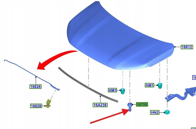 ODBÓJ MASKI FORD TRANSIT COURIER 2014- 2023- 1860373 _ ET76-16C618-BA